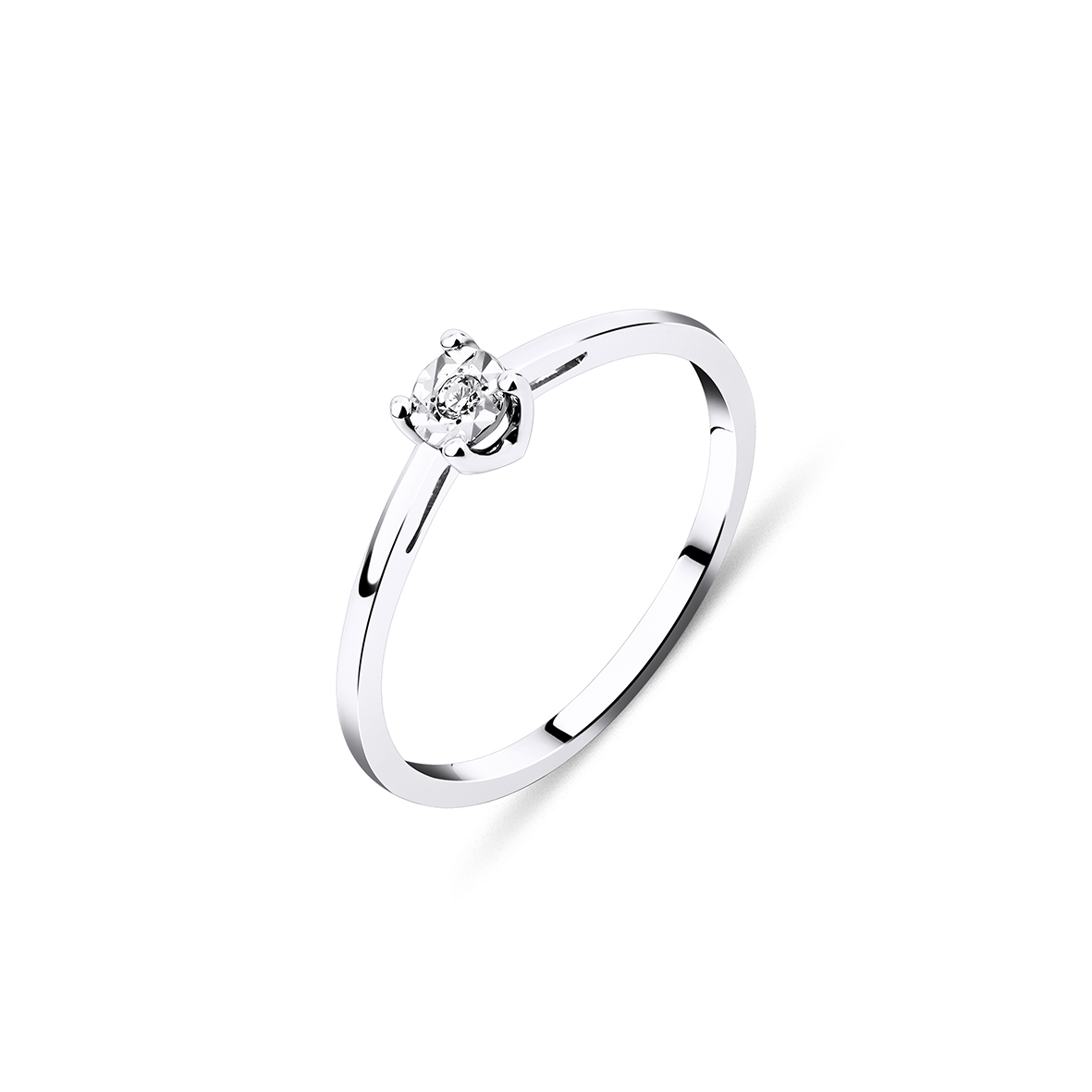 Decentní zásnubní prsten na čtyři krapny s jemným briliantem zdobený diamantovým brusem