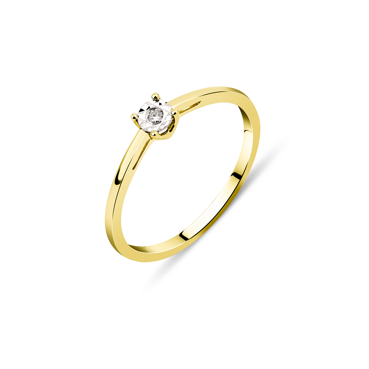 Jemný zásnubní prsten na čtyři krapny s malým briliantem zdobený diamantovým brusem